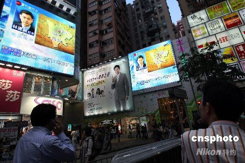 五月十二日晚,香港市民在街頭觀看新聞,關(guān)注四川等地發(fā)生的地震消息。當(dāng)天下午,香港天文臺(tái)也接獲市民報(bào)告,多名市民表示感覺(jué)到一次震動(dòng)。中新社發(fā) 洪少葵 攝