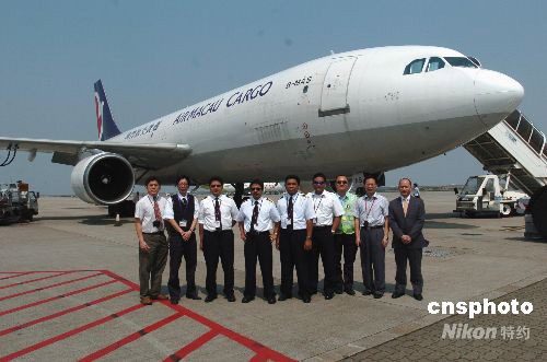 五月十五日,一架滿載臺(tái)灣同胞為四川地震災(zāi)區(qū)捐贈(zèng)的四十三噸救災(zāi)物資的飛機(jī)停在澳門國際機(jī)場整裝待發(fā)。澳門航空公司免費(fèi)加開的這架空中巴士A300-600R貨機(jī)當(dāng)日中午從臺(tái)北桃園機(jī)場起飛,在澳門國際機(jī)場作暫短停留后,將飛抵成都雙流國際機(jī)場。中新社發(fā) 史利 攝