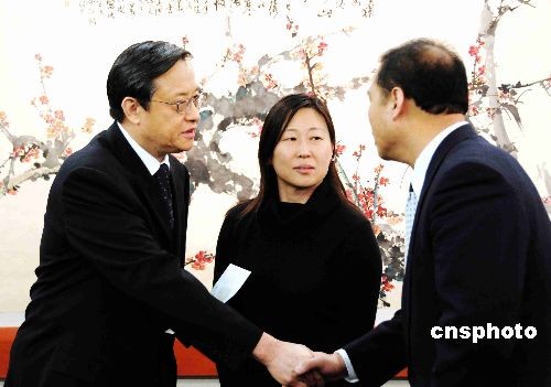 當(dāng)?shù)貢r(shí)間五月二十日下午,大華府華僑華人及留學(xué)生代表來到中國駐美使館,悼念四川大地震死難同胞并舉行向中國地震災(zāi)區(qū)捐款儀式。大華府華僑華人迄今總共為災(zāi)區(qū)捐款近三十萬美元。圖為周文重大使(左)代表災(zāi)區(qū)接受北京大學(xué)校友會代表呂玫(中)、穆毅瑞(右)和其他僑社捐款,并感謝僑胞們一片愛心。
