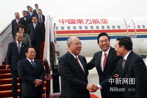 圖:中國(guó)國(guó)民黨主席吳伯雄一行抵達(dá)北京