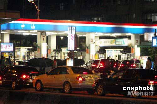 圖:臺灣凌晨全面調(diào)升油價 加油站排長龍