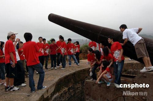 5月30日,前來參加兩岸中學生夏令營的馬祖高級中學師生正在參觀長門炮臺。長門炮臺是目前中國保留下來的最古老的最大的炮臺,它始建于明崇禎年間,位于連江縣館頭鎮(zhèn)長門村電光山上,歷經了數次戰(zhàn)火洗禮,扼守閩江口第一要隘。中新社發(fā) 王東明 攝