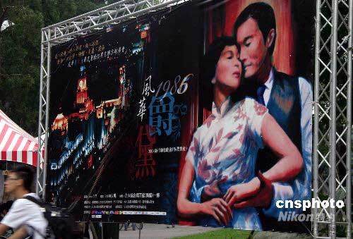 六月七日,一年一度的臺灣大學(xué)畢業(yè)聯(lián)歡舞會舉辦。今年的舞會主題是“風(fēng)華爵黛”,要求男生著西裝、女生著禮服出席,并打出巨幅上海灘夜景廣告,渲染“老上!睉雅f風(fēng)情。中新社發(fā) 許曉青 攝