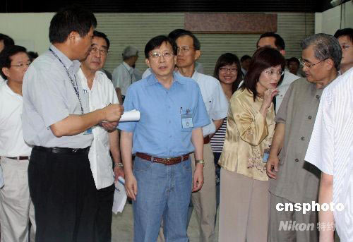 大陸觀光客七月四號即將來臺,六月二十一日,臺灣“行政院長”劉兆玄到臺北松山機場及日月潭視察接待準備工作。他強調(diào),除了硬件要做到最好之外,更要注意人員的素質(zhì),希望大陸觀光客一踏進機場,立刻感受到最好的氣氛。圖為劉兆玄在松山機場聽取稽查人員有關工作匯報。 中新社發(fā) 耿軍 攝