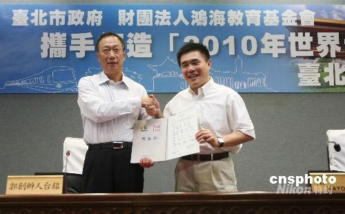 6月下旬,臺(tái)灣鴻海集團(tuán)董事長郭臺(tái)銘捐出新臺(tái)幣三億元給臺(tái)北市政府,作為2010年舉行的上海世界博覽會(huì)“臺(tái)北展覽館”的興建費(fèi)用。中新社發(fā) CNA 攝