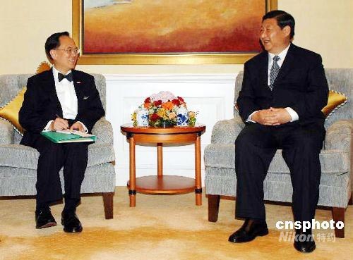 七月六日,中國國家副主席習近平在香港會見特區(qū)行政長官曾蔭權(quán)。中新社發(fā) 新聞處 攝