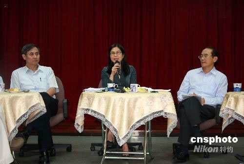 9月2日日下午,臺(tái)灣“陸委會(huì)”主委賴幸媛(中)與媒體茶敘。圖為賴幸媛正在回答記者的提問(wèn)。中新社發(fā) 陳立宇 攝