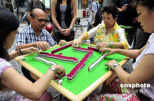 九月五日,首屆“世界麻將大賽”冠軍許宗澧在記者會(huì)上與其它選手比較高下。第二屆“世界麻將大賽”將于九月十九日至二十一日在澳門舉行,提供麻將競(jìng)賽有史以來的最高額獎(jiǎng)金一百萬(wàn)美元。中新社發(fā) 譚達(dá)明 攝