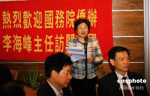 當?shù)貢r間9月12日晚,正在倫敦訪問的李海峰出席英國僑界公宴。李海峰主任在致辭時說,希望廣大海外僑胞在一個中國旗幟下,擱置爭議、求同存異,以包容、平和、務實的心態(tài)增進團結(jié)、密切往來、加強合作。中新社發(fā) 李鵬