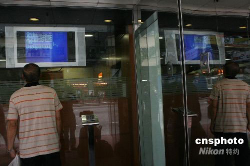 九月十六日,受美國雷曼兄弟破產(chǎn)、美股大跌影響,香港恒生指數(shù)重挫,開市跌逾千點。圖為香港股民關(guān)注股市及時行情。中新社發(fā) 武仲林 攝