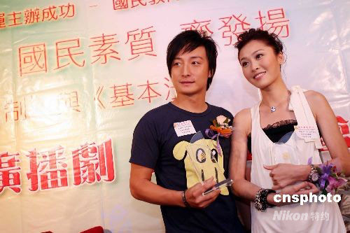 由香港政制及內(nèi)地事務(wù)局贊助,國民教育中心策劃,有關(guān)基本法及發(fā)揚奧運精神系列活動即將在香港推出。九月二十日,參與“一國兩制”與“基本法”廣播劇演出的影視紅星方力申、周麗淇出席記者會與青少年分享心得。中新社發(fā) 洪少葵 攝