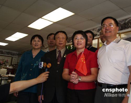 當?shù)貢r間9月24日,中國神舟七號載人飛船發(fā)射圓滿成功,極大地鼓舞了海外華人的愛國熱情。美國南加州華人聯(lián)合總會會長程遠、亞裔聯(lián)盟主席江志成、美國浙江經(jīng)貿(mào)聯(lián)合會榮譽會長李社潮等僑領(lǐng)聚集在洛杉磯,熱烈慶祝祖國航天事業(yè)取得偉大成就。中新社發(fā) 盧威 攝