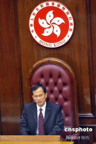 十月八日,香港特別行政區(qū)第四屆立法會(huì)在立法會(huì)大樓會(huì)議廳舉行首次會(huì)議并選出新一屆立法會(huì)主席。曾鈺成以三十六票當(dāng)選。中新社發(fā) 鄧慶樂 攝