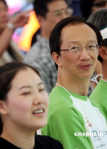 十月二十五日,國際小母牛香港分會(huì)董事局主席梁錦松、小母牛組織愛心大使伏明霞在香港維多利亞公園出席小母!案偛缴菩卸懔惆恕贝壬票荣悾瑸樗拇(zāi)區(qū)重建工作籌款。中新社發(fā) 武仲林 攝
