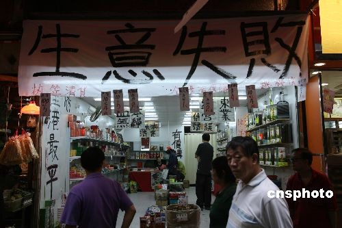 十一月二日,香港灣仔一店鋪打出結(jié)束營業(yè)、低價清盤的橫幅。數(shù)據(jù)表明,在剛剛過去的十月份,香港已有近五十家港企申請清盤,以主營制造業(yè)和零售業(yè)的中小企業(yè)為主,其中也不乏合俊、泰林等有一定規(guī)模和歷史的企業(yè)。業(yè)內(nèi)人士認(rèn)為,受金融海嘯直接影響而倒閉的公司將陸續(xù)出現(xiàn),今年年底將迎來倒閉高潮。中新社發(fā) 武仲林 攝