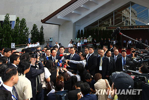 11月4日,海協(xié)會會長陳云林與海基會董事長江丙坤前往吊唁已故著名企業(yè)家王永慶。新華社記者 邢廣利 攝