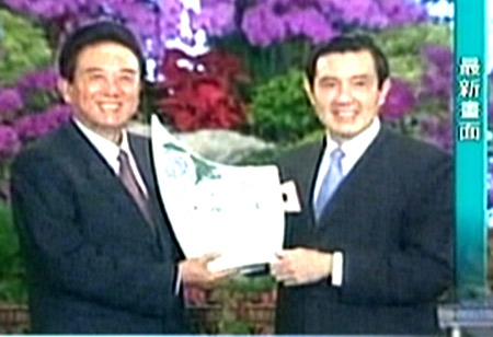 11月6日上午,馬英九與海協(xié)會(huì)會(huì)長陳云林一行會(huì)面,并互贈(zèng)禮物。