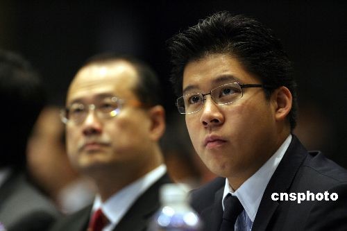 十一月十一日,四川省抗震救災(zāi)致謝暨災(zāi)后重建(香港)投資說(shuō)明會(huì)在香港華潤(rùn)大廈舉行,全國(guó)政協(xié)副主席董建華、香港中聯(lián)辦主任高祀仁、四川省委書(shū)記劉奇葆、香港政務(wù)司司長(zhǎng)唐英年等出席。中新社發(fā) 武仲林 攝