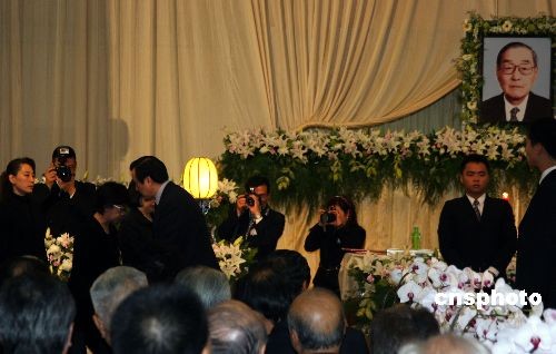 圖為馬英九到場(chǎng)發(fā)表追思感言后慰問(wèn)孔德成先生家屬。