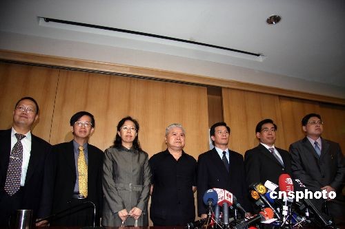 圖為陳云南(中)等“特別偵查組”七位檢察官準備回答記者提問。