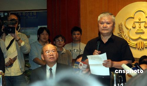 臺灣“檢察總長”陳聰明(左一)主持下午的新聞發(fā)布會,特別偵查組發(fā)言人陳云南(右一)向媒體介紹了偵查結果及長達二百零九頁的起訴書基本內容,臺灣檢方依“貪污治罪條例”等罪將陳水扁等十四人提起公訴。
