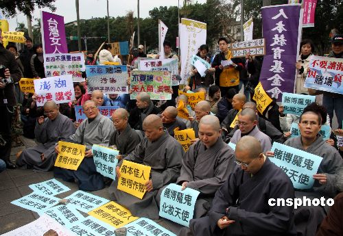 1月12日,臺(tái)灣“立法院”將表決離島建設(shè)條例部分條文修正草案,即博弈條款。圖為約百名反賭博合法化聯(lián)盟的成員,當(dāng)天上午到“立法院”門(mén)口陳情抗議,表達(dá)反賭博合法化立場(chǎng)。中新社發(fā) 陳立宇 攝