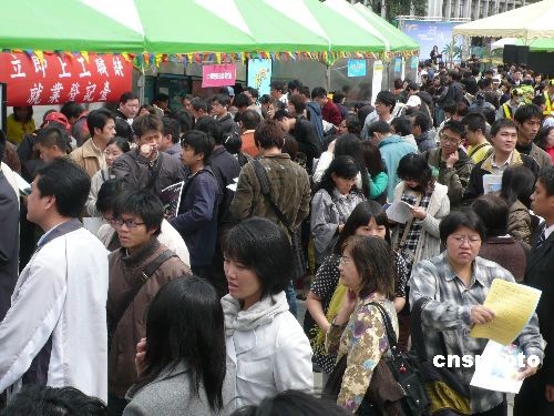 大環(huán)境經(jīng)濟(jì)不景氣,臺(tái)灣去年十二月失業(yè)率超過百分之五,失業(yè)人口近五十無萬!爸饔(jì)處”對(duì)今年經(jīng)濟(jì)成長(zhǎng)率的預(yù)測(cè)為負(fù)百分之二點(diǎn)九七。臺(tái)北市政府勞工局在二十一日舉行了一場(chǎng)就業(yè)博覽會(huì),釋出兩千多個(gè)工作職位,并提供職業(yè)訓(xùn)練課程供民眾申請(qǐng)。中新社發(fā) 路梅 攝