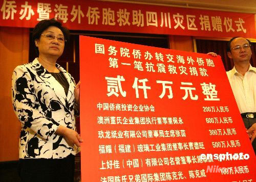 國僑辦向汶川地震災(zāi)區(qū)轉(zhuǎn)交海外僑胞首批捐款