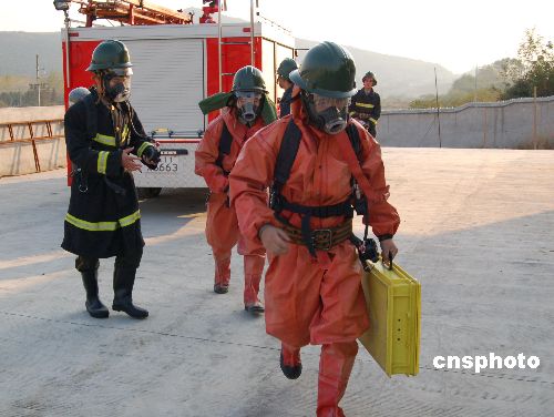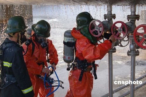 11月6日,安徽省含山縣舉行特種設備“事故”應急反應演習,質量技術監(jiān)督、消防、特種設備救援等多支專業(yè)隊伍參加了演習。演習旨在檢驗發(fā)生特種設備重特大事故后的現(xiàn)場聯(lián)動反應能力,提高相關部門在信息傳遞流程、應急反應速度和應急救援技能。中新社發(fā) 田斌峰 攝