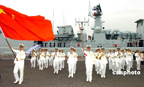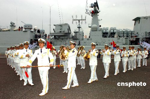 11月28日上午,中國海軍“深圳”號導彈驅逐艦抵達日本東京晴海碼頭,開始對日本進行正式友好訪問。在日方舉行的歡迎儀式后,中國海軍軍樂團在“深圳”號前進行列隊表演。中新社發(fā) 滕劍峰 攝