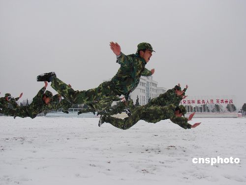 1月16日,濟(jì)南空軍某飛行學(xué)院某部警通連官兵結(jié)合軍事訓(xùn)練開(kāi)展文體活動(dòng)。時(shí)值“三九”寒天,江淮大地普降大雪,而濟(jì)南空軍某飛行學(xué)院訓(xùn)練場(chǎng)上的官兵們斗志昂揚(yáng)。中新社發(fā) 耿國(guó)慶 攝