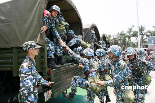 中國海軍陸戰(zhàn)隊官兵緊急起程奔赴汶川災區(qū)