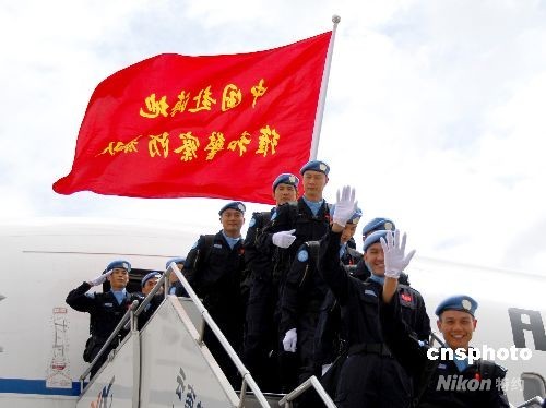 8月15日上午,中國(guó)第六支赴海地維和警察防暴隊(duì)95名隊(duì)員飛抵昆明巫家壩國(guó)際機(jī)場(chǎng),加上此前已經(jīng)回國(guó)的30名先遣隊(duì)員,這支由125名隊(duì)員組成的隊(duì)伍圓滿完成為期8個(gè)月的聯(lián)合國(guó)海地任務(wù)區(qū)維和任務(wù),胸掛聯(lián)合國(guó)“和平勛章”凱旋回國(guó)。中新社發(fā) 甘娜 攝