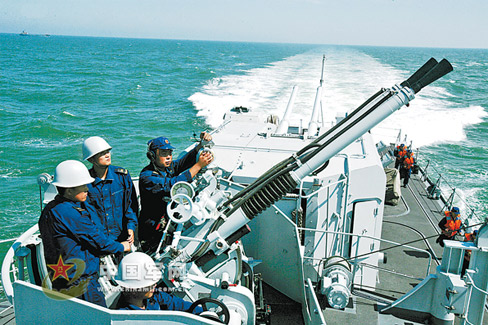 國(guó)慶長(zhǎng)假剛過,東海艦隊(duì)某驅(qū)逐艦支隊(duì)把艦艇拉到某陌生海域,開展編隊(duì)聯(lián)合海上對(duì)抗演練,提高部隊(duì)實(shí)戰(zhàn)能力。圖為艦艇編隊(duì)航渡途中進(jìn)行防空訓(xùn)練的情景。 解放軍報(bào)特約通訊員 代宗鋒攝