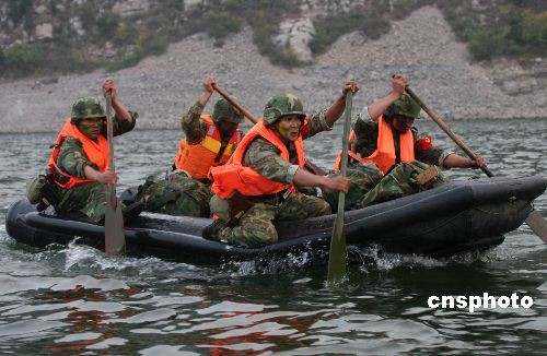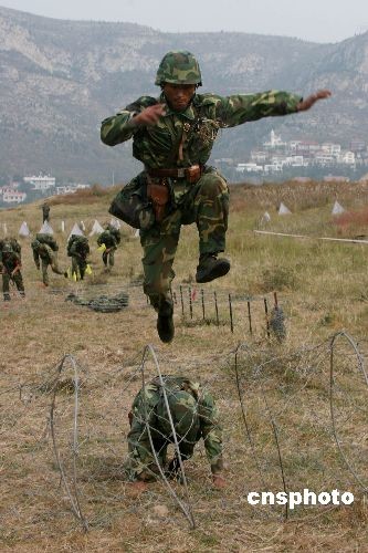 10月18日,濟(jì)南軍區(qū)偵察兵動(dòng)態(tài)比武展開。滿臉油彩的偵察隊(duì)員們身負(fù)35公斤戰(zhàn)斗裝具行軍50公里,主要進(jìn)行了夜間行軍、操舟越障、通過雷場、偵察報(bào)知、調(diào)制要圖、山地攀登六項(xiàng)課目考核。中新社發(fā) 崔成俊 攝