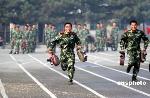 2008年10月22日,沈陽市公安局消防支隊在消防訓(xùn)練基地隆重舉行“學(xué)啟工,練精兵”比武競賽活動,活動中廣大消防官兵通過體能、技能、戰(zhàn)術(shù)、合成及新裝備演示等幾項基本功的對決,最終決出誰是“練兵武狀元”。中新社發(fā) 趙敬東 攝