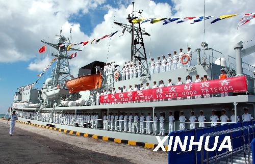 11月5日,中國海軍“鄭和號”訓(xùn)練艦駛?cè)爰砥艺鞴耸械奈鞴烁,開始為期9天的柬埔寨之旅!班嵑吞枴笔歉鶕(jù)中柬兩軍制定的2008年友好交流計劃抵柬進(jìn)行正式友好訪問的,這也是中國海軍艦船首次訪問柬埔寨。新華社記者夏林?jǐn)z