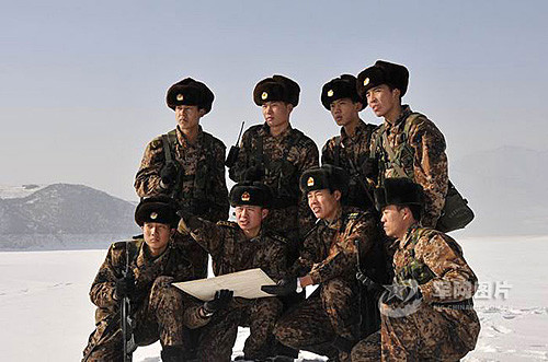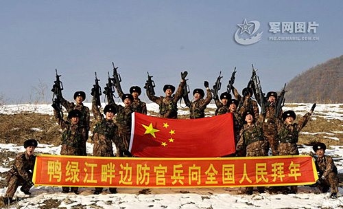 圖:鴨綠江畔邊防官兵向全國人民拜年
