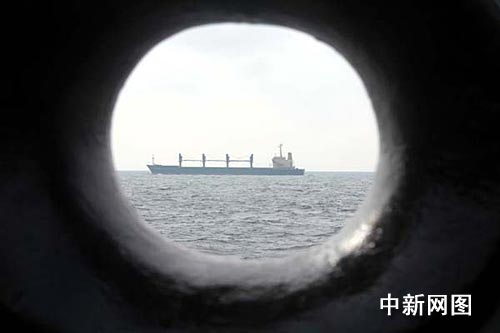 圖:“海口”號導(dǎo)彈驅(qū)逐艦護航商船前行