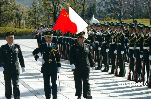 2月19日,正在日本進行訪問的中國人民解放軍副總參謀長葛振峰上將應邀訪問了日防衛(wèi)省,并在陸上自衛(wèi)隊幕僚長折木良一將軍的陪同下檢閱了陸上自衛(wèi)隊儀仗隊。這也是中國副總參謀長第一次對日本進行訪問。葛振峰于當月16日抵達日本,將于20日結束全部行程回國。中新社發(fā) 朱沿華 攝