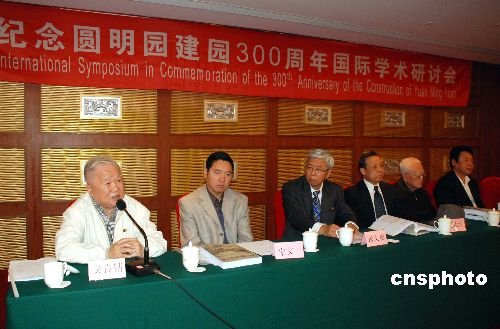10月18日,中國圓明園學(xué)會主辦的“紀(jì)念圓明園建園300周年國際學(xué)術(shù)研討會”在北京召開。一百多名來自中國、法國、美國、意大利、韓國、日本等國的專家學(xué)者參加了會議。會議就圓明園所涉及的歷史、人文、園林、建筑、文物保護、考古挖掘及利用和開發(fā)等多學(xué)科發(fā)表學(xué)術(shù)觀點,展開國際學(xué)術(shù)交流。圖為會議現(xiàn)場,建筑學(xué)家、兩院院士吳良鏞(左一)發(fā)言談圓明園的保護和利用。中新社發(fā) 李學(xué)仕 攝