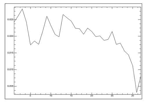 圖3 光譜曲線(橫軸為通道數(shù),縱軸為輻亮度,本圖是圖2反演的光譜曲線)