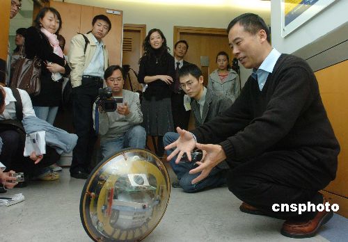 一月八日,二零零七年十二月剛剛當(dāng)選的中國(guó)工程院院士、著名空間機(jī)械人與智能控制專家、香港中文大學(xué)機(jī)械與自動(dòng)化工程學(xué)講座教授徐揚(yáng)生教授會(huì)見傳媒,介紹部分最新科研成果。中新社發(fā) 鄧慶樂(lè) 攝