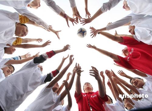 3月27日,重慶清華中學(xué)的學(xué)生正在與英國(guó)愛(ài)德華七世國(guó)王學(xué)校的師生共同開(kāi)展手球、板球、跳鍵等體育活動(dòng)。當(dāng)日,由英國(guó)駐重慶總領(lǐng)事館牽頭進(jìn)行的團(tuán)隊(duì)與夢(mèng)想”教育交流項(xiàng)目啟動(dòng),該項(xiàng)目是一個(gè)成功的全區(qū)項(xiàng)目,它通過(guò)一系列的培訓(xùn)和引導(dǎo),讓學(xué)生自主舉辦語(yǔ)言學(xué)習(xí)及文化交流和文體活動(dòng),發(fā)展和培養(yǎng)14--18歲在校學(xué)生的領(lǐng)導(dǎo)才能。 中新社發(fā) 賀終榮 攝