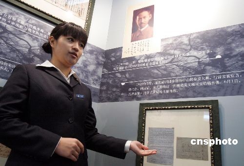 4月5日,孫中山秘書、宋慶齡摯友——楊杏佛的七百余件珍貴遺物在上海解密,內(nèi)容涉及民國政治、科技及文學(xué)界秘聞。圖為在上海宋慶齡陵園首次公展的部分楊杏佛珍貴遺物,包括一九二九年,宋慶齡致信楊杏佛,委托其在上海報章刊登“不再參加國民黨工作”的英語聲明稿及信函原件。中新社發(fā) 潘索菲 攝
