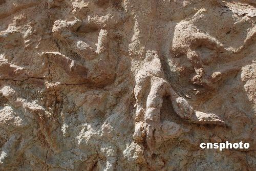 中德古生物學(xué)家4月10日宣布,日前在中國(guó)新疆吐魯番盆地鄯善地區(qū)侏羅紀(jì)地層中首次發(fā)現(xiàn)一批恐龍足跡化石。目前已發(fā)現(xiàn)恐龍足印150余個(gè),分布范圍長(zhǎng)達(dá)100余米,這批恐龍生活在距今約1.65億年前的侏羅紀(jì)中期,身長(zhǎng)約5至6米,屬于群居小型肉食類恐龍。 至少包括兩種類型,均屬于肉食性的獸腳類恐龍。 此次鄯善地區(qū)恐龍足跡化石的發(fā)現(xiàn),在新疆尚屬首次。它填補(bǔ)了新疆地區(qū)恐龍足跡研究的空白。中新社發(fā) 緱燁 閆軍 攝