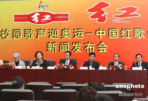 4月29日,“校園歌聲迎奧運(yùn)——中國紅歌會”新聞發(fā)布會在北京宣布,從當(dāng)日起在全國各高校選拔迎奧運(yùn)“紅歌會”歌手。該活動(dòng)由中國藝術(shù)教育促進(jìn)會、中國新聞社、江西電視臺傾情打造, 參賽者演唱的“紅歌”包括歷屆奧運(yùn)歌曲、北京奧組委推薦歌曲、經(jīng)典優(yōu)秀歌曲和學(xué)生自創(chuàng)的校園歌曲,希望藉此使更多青年學(xué)生用歌唱的形式激發(fā)凝聚力、向心力和創(chuàng)新精神,掀起中國高校迎奧運(yùn)的熱潮。中新社發(fā) 趙振清 攝