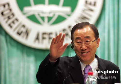 7月1日下午,聯(lián)合國(guó)秘書長(zhǎng)潘基文抵達(dá)北京,開始對(duì)中國(guó)進(jìn)行為期3天的正式訪問(wèn)。圖為潘基文在外交學(xué)院發(fā)表演講。中新社發(fā) 張宇 攝