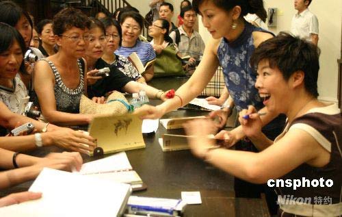 北京師范大學教授于丹20日在美國紐約哥倫比亞大學舉行講座,吸引數(shù)百“于丹迷”到場。圖為于丹講座結(jié)束后為“于丹迷”們簽名留念。中新社發(fā) 李靜 攝