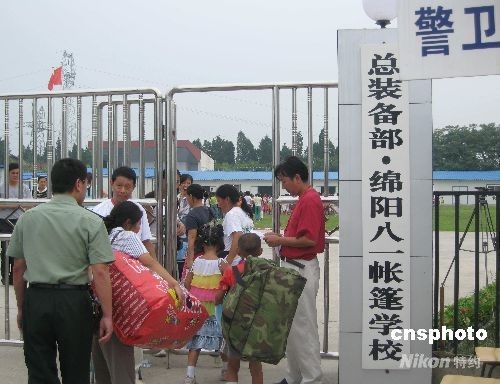 8月20日,在汶川大地震中受損嚴(yán)重的四川省綿陽(yáng)市1000余所中小學(xué)全部開(kāi)學(xué),其中板房學(xué)校有612所。圖為北川學(xué)生進(jìn)入由總裝備部出資修建的綿陽(yáng)八一帳蓬學(xué)校。據(jù)介紹,該學(xué)校將接納北川羌族自治縣曲山小學(xué)和劉漢希望小學(xué)的九百余名學(xué)生。中新社發(fā) 霍潺 攝